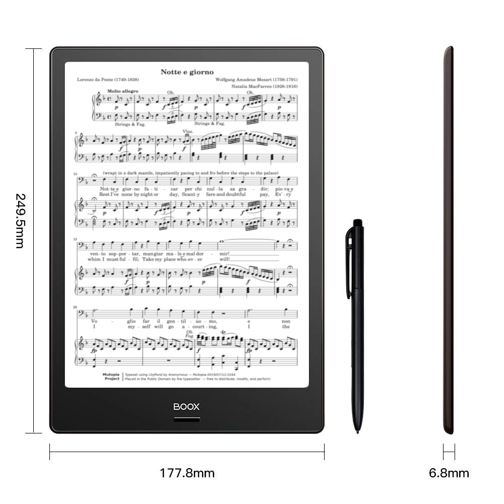Tabletspecificaties Merk: Boox Model: Note 10.3 ePaper Type: Slate Besturingssysteem: Android Scherm 🖵: 10.3 Inch Beoordeling van schermgrootte: Schermresolutie: 1872 x 1404 pixels Bladmuziek-app*: Batterij ⏳: 672 hours Bluetooth: Ja Usb: Nee Digitaliseringspen ✎: Ja Gewicht: 0.325 kg / 0.72 lbs Breedte: 7 inch / 17.78 cm Hoogte: 9.8 inch / 24.89 cm Dikte: 0.3 inch / 0.76 cm Releasedatum: 0000-00-00 Prijsindicatie 💰: 489 USD 509 EURO 0 GBP Opmerkingen: eInk Screen in grayscale Afbeeldingen: |
